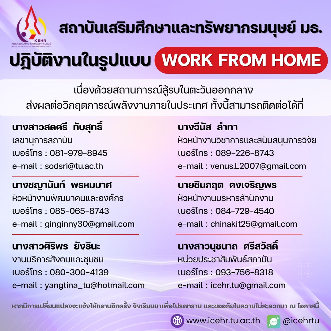 หลักสูตรที่ออกแบบมาเพื่อให้บุคลากรทุกหน่วยงานได้นำความรู้พัฒนาตนเองและองค์กรอย่างมีประสิทธิภาพ พร้อมรับใบรับจาก มธ.